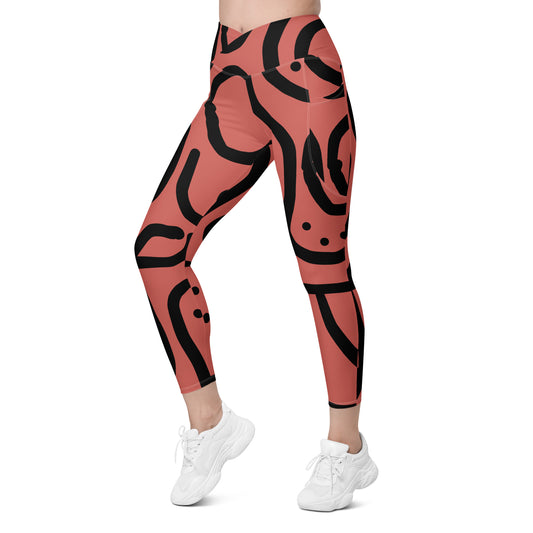 Bantu Print - Rosy Pink - Crossover leggings with pockets