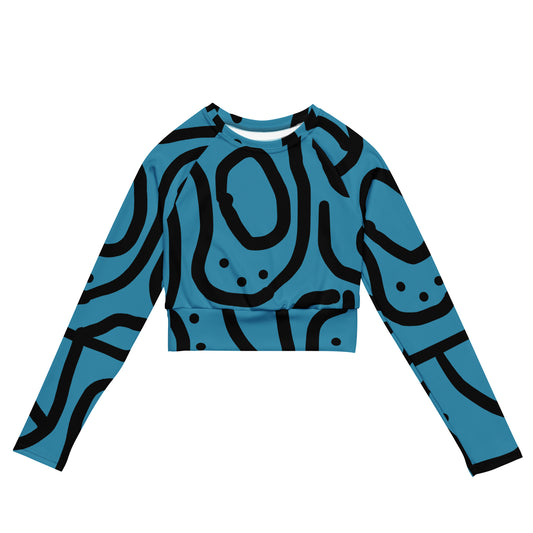 Bantu Print - Blue and Black - Recycled long-sleeve crop top